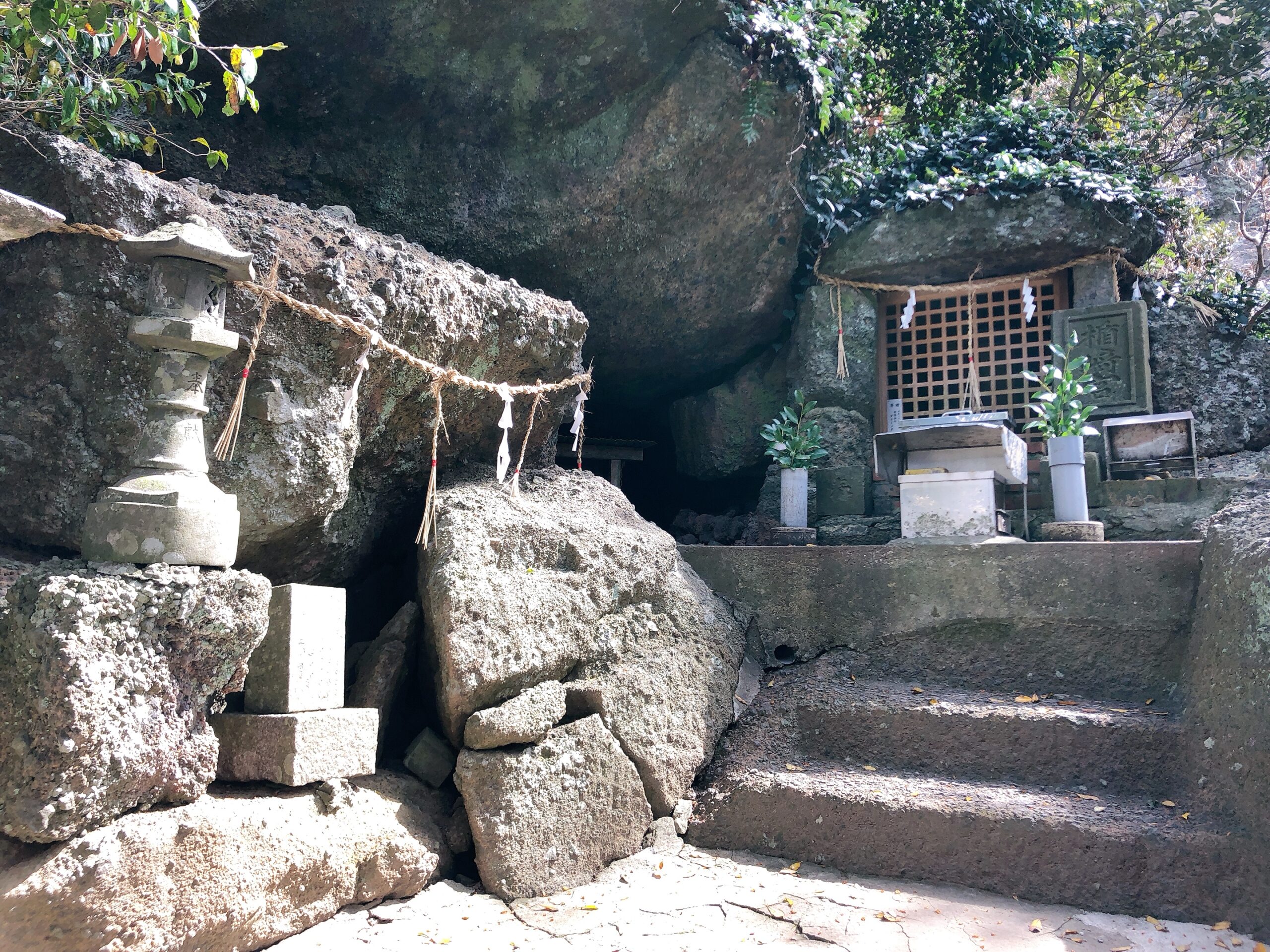 御神石の根元が 洞窟になっています。由緒等は 調べましたが わかりませんでした。